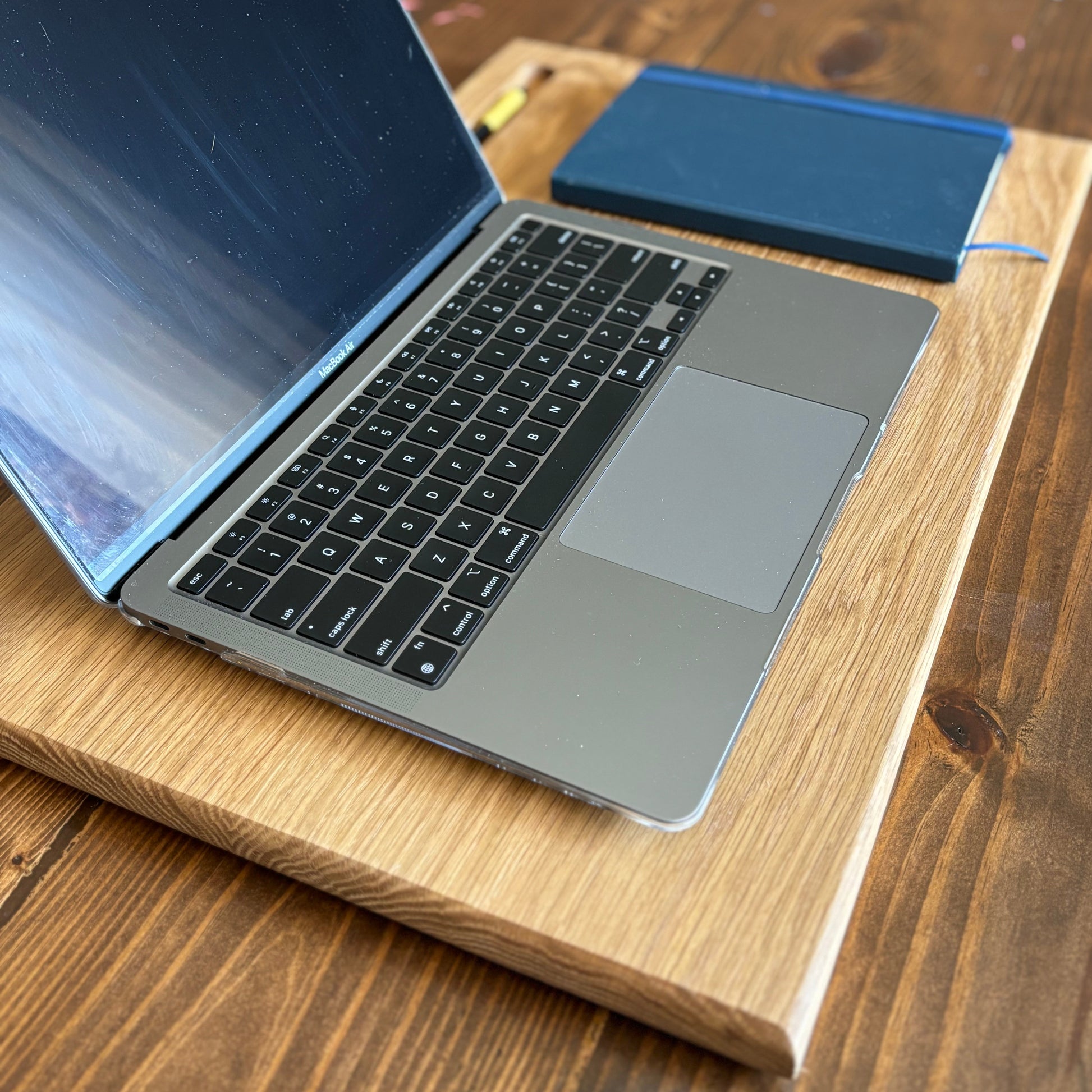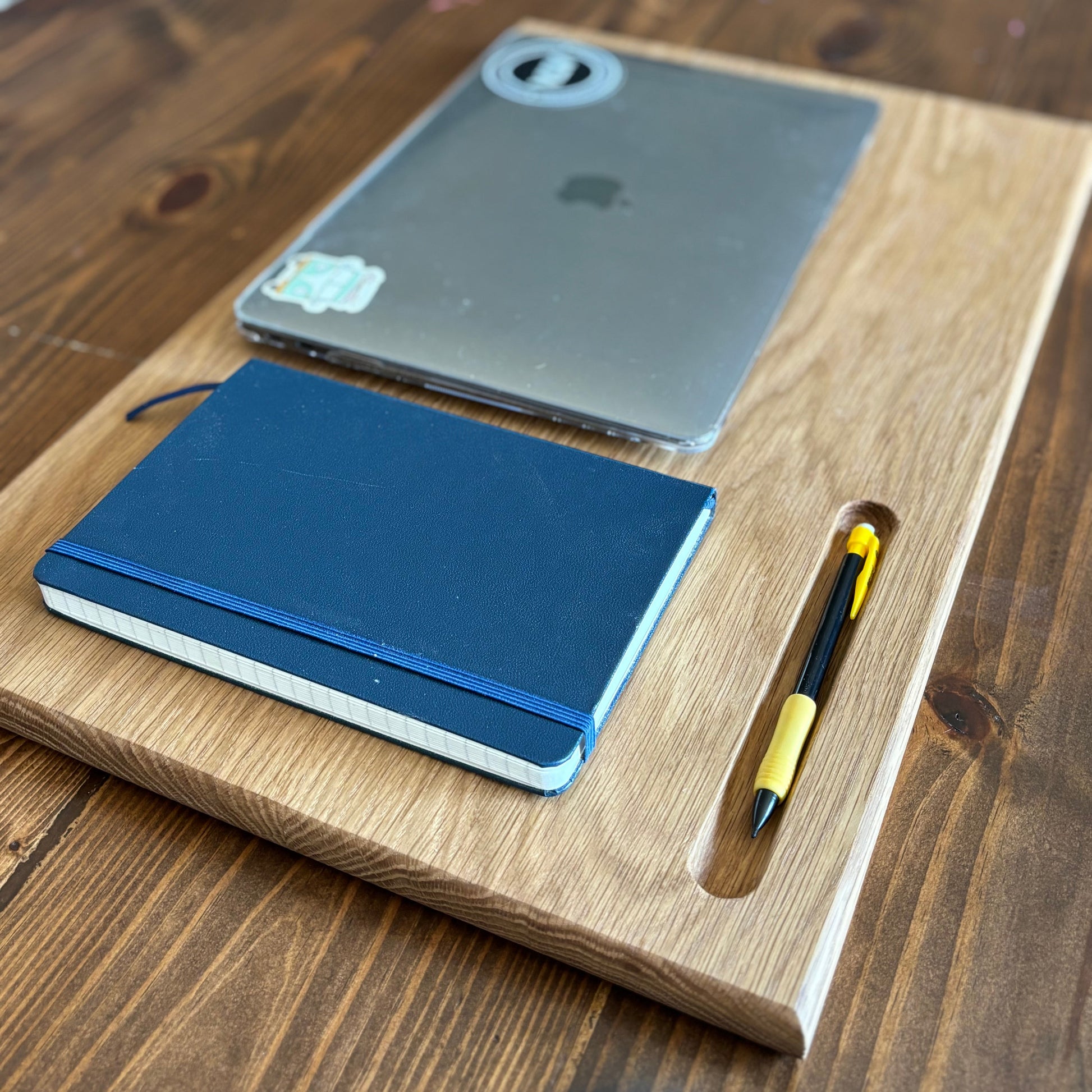 Perfect for laptops, notebooks, or your morning coffee, this piece keeps your setup clean and organized while adding a touch of handmade charm. Finished smooth and protected with a natural oil to let the wood’s beauty speak for itself.